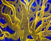 HOLDING UP THE SKY - 2025 oils/canvas 72 x 60" The dragon blood trees have morphed into beings, their branches became hands. I painted this piece rotating it between sessions. So essentially it could be a ceiling piece or a wall piece that can be rotated for different views.